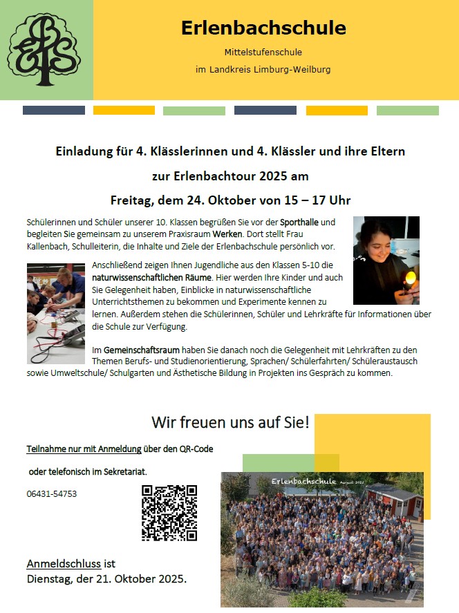 Am Mittwoch, dem 2. Oktober 2025, nahmen die Schülerinnen und Schüler der Jahrgänge 8, 9 und 10 der Erlenbachschule an besonderen Workshops teil: „Deine Zukunft #REAL:DIGITAL“. Die mobile Initiative des Hessischen Ministeriums für Kultus, Bildung und Chancen zur beruflichen Orientierung kam direkt an die Erlenbachschule. Das Projekt fand jeweils im Rahmen von zwei Schulstunden pro Lerngruppe in der Schulturnhalle statt und widmete sich dem verantwortungsvollen und sicheren Umgang mit digitalen Medien.